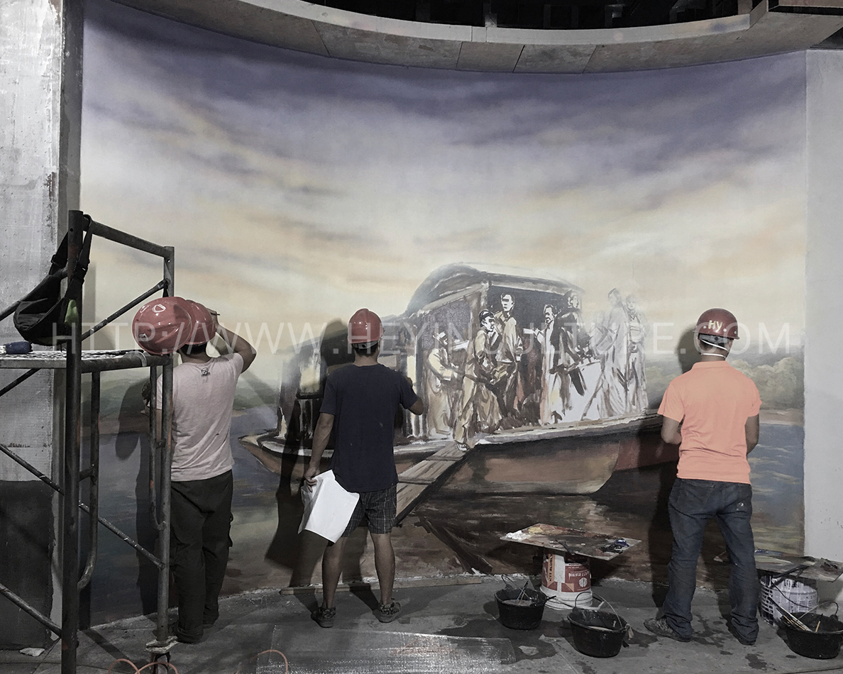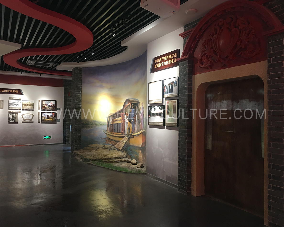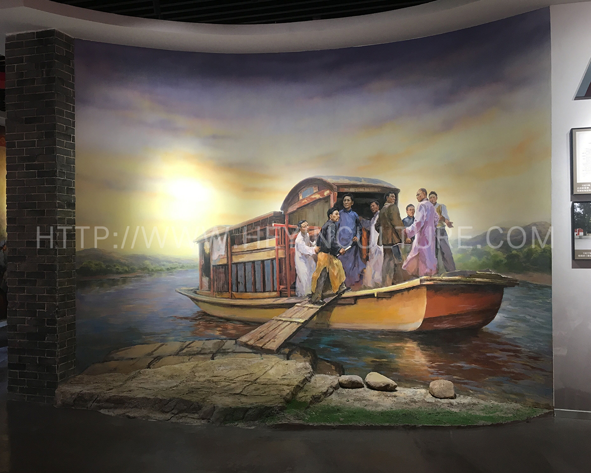 △中共一大紅船-油畫背景、江岸地面場景復原