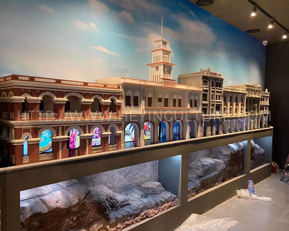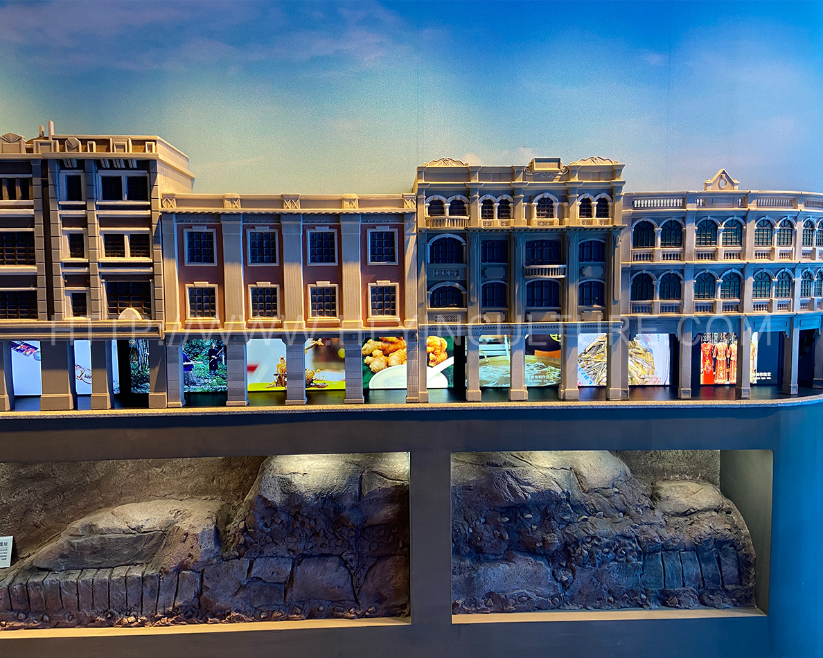 ▲ 多建筑組合模型(省港大罷工紀念、消防總局舊址、李占記、五仙門發(fā)電廠舊址、周恩來主持的中共兩廣區(qū)委軍舊址、文德路)
