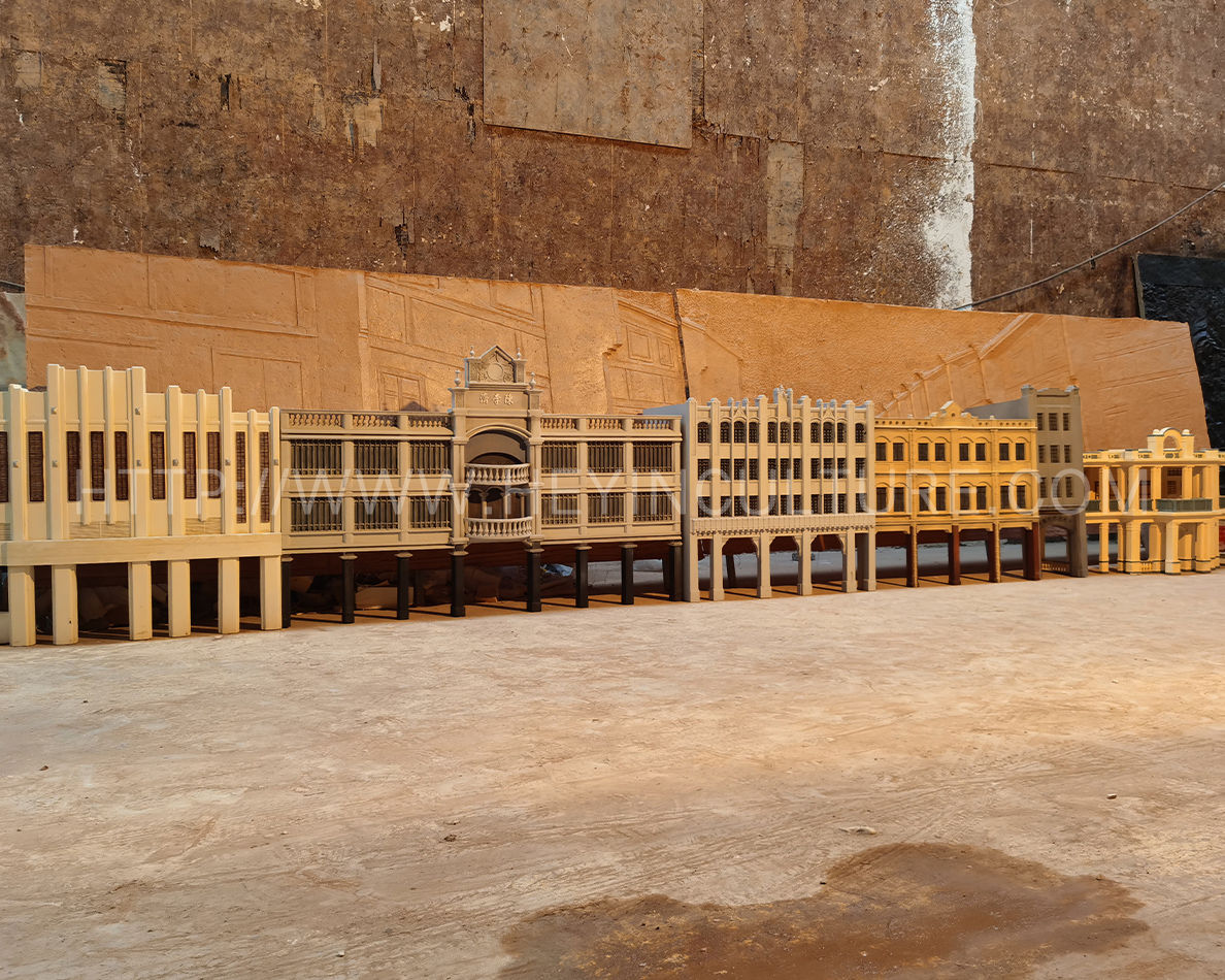 ▲ 多建筑組合模型(省農(nóng)民協(xié)會舊址、太平館、中共中央委員會舊址、商務(wù)印書局廣州分局、陳李濟、永漢電影院)