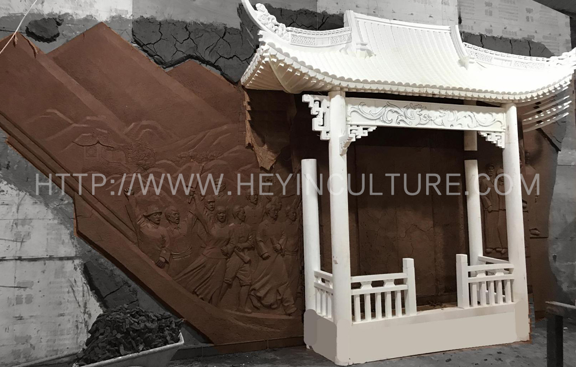 背景浮雕泥塑制作中