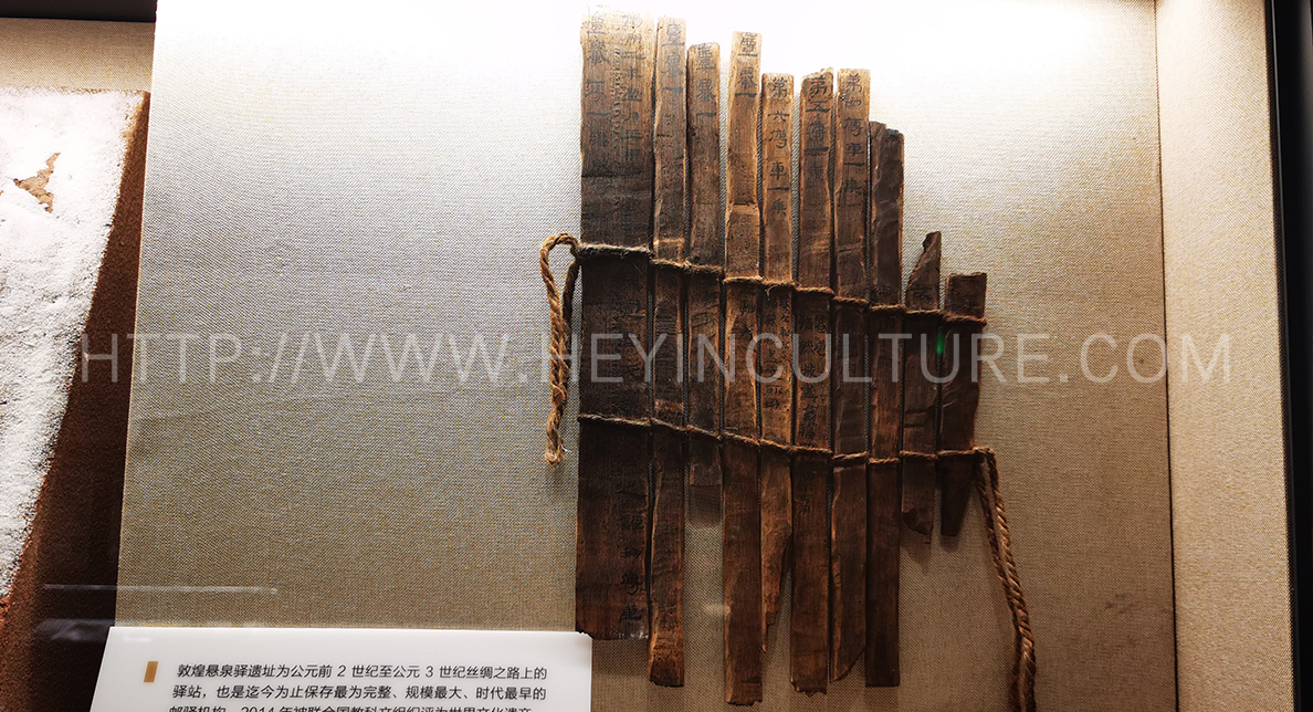 ▲ “敦煌懸泉驛遺址”竹簡(jiǎn)復(fù)原(仿制品)