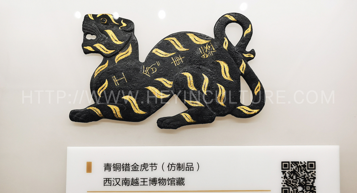 ▲ 青銅錯(cuò)金虎節(jié)(仿制品)