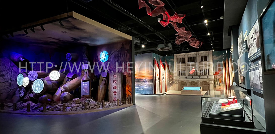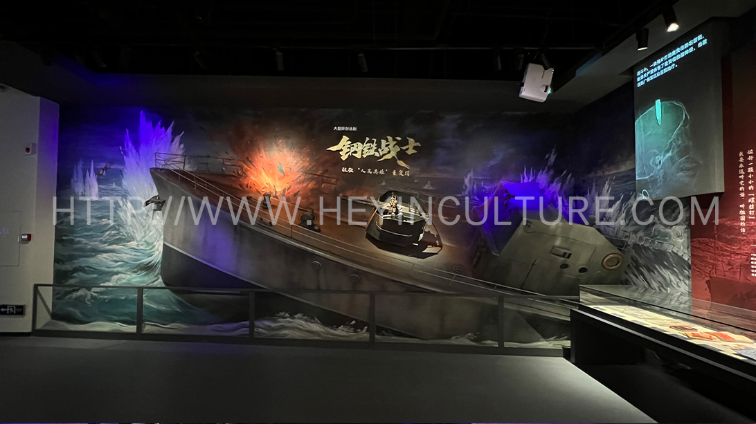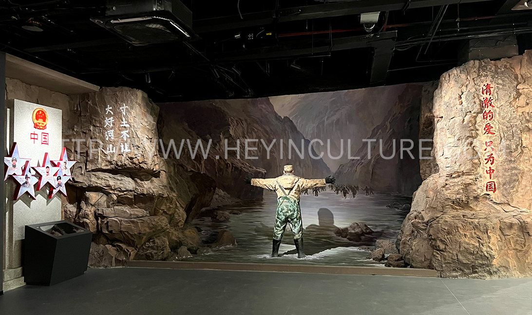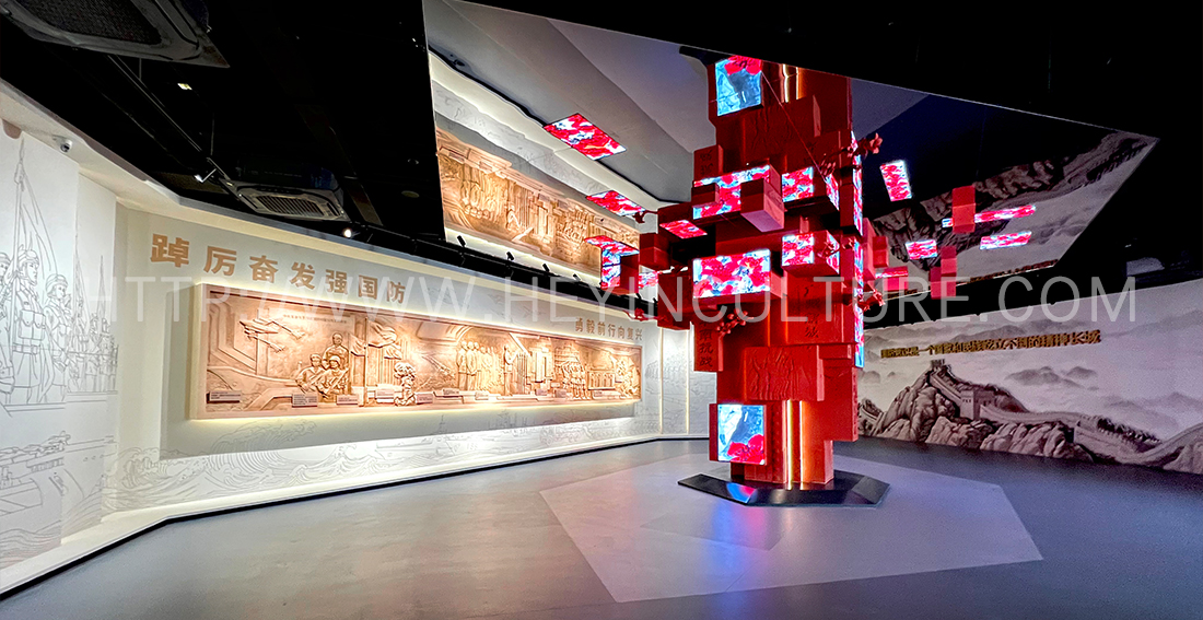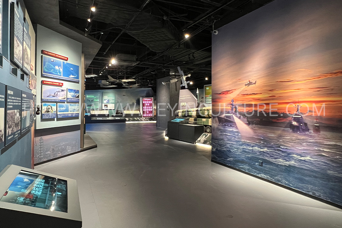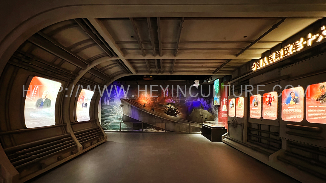 在該項目中,我司深度參與了場景設計與實施全流程,通過打造沉浸式展廳空間,實現(xiàn)了歷史場景活化與國防教育的有機融合,構(gòu)建出多維立體的國防教育體驗空間。